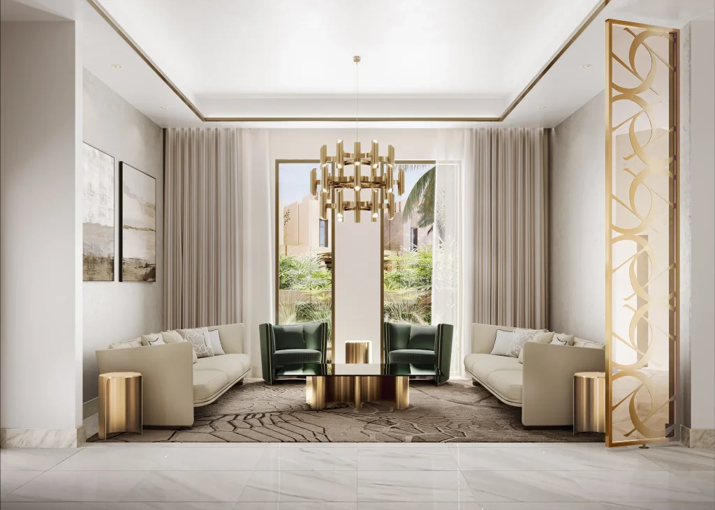 يحمل المشروع توقيع دار Elie Saab Maison في كل تفصيلة، من الواجهات الخارجية المستوحاة من العمارة السلمانية العصرية، إلى التفاصيل الداخلية التي تعبّر عن الفخامة الهادئة.